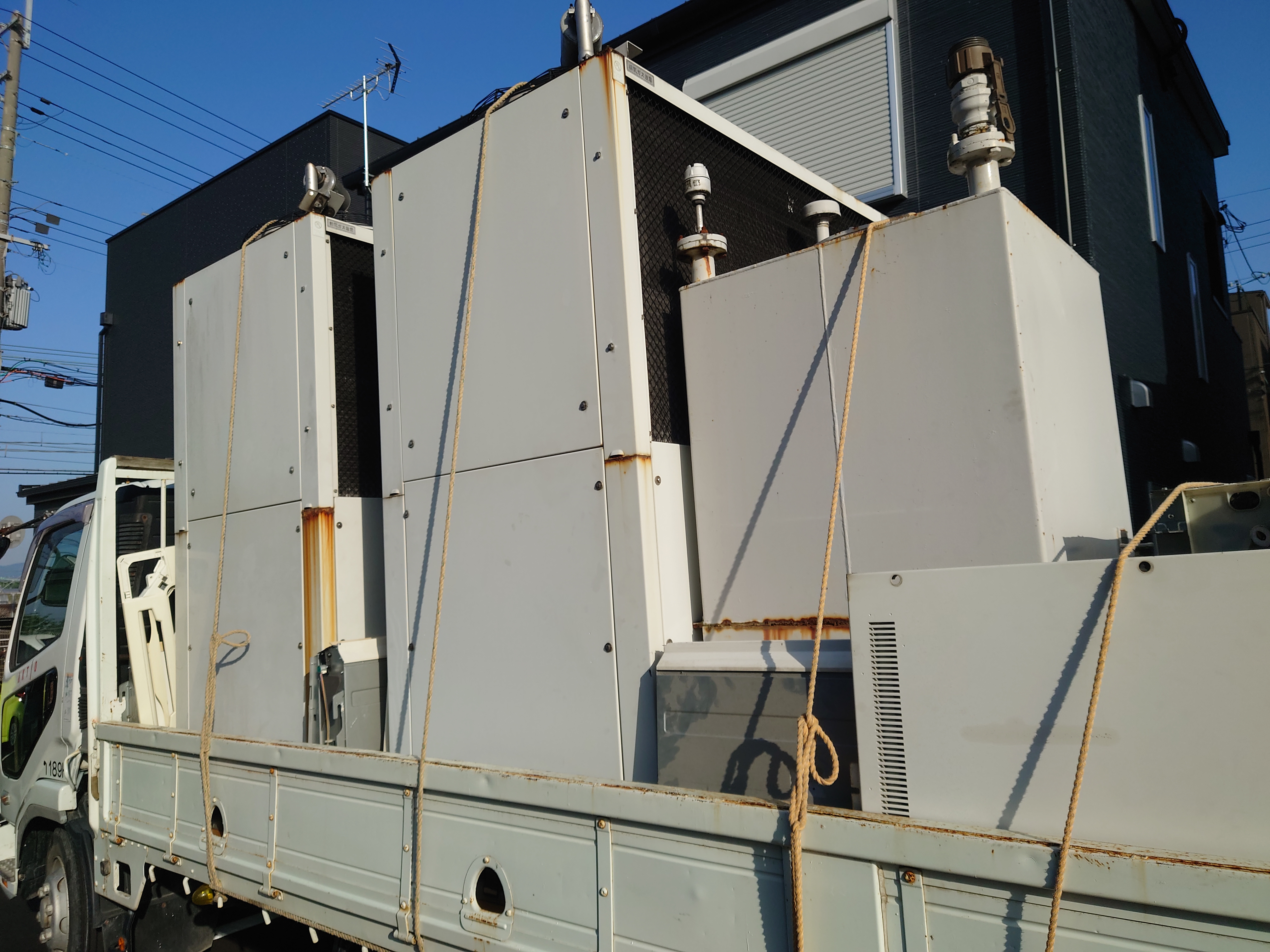 無事、新設エアコンの搬入も終わり、今からは配管接続作業!!