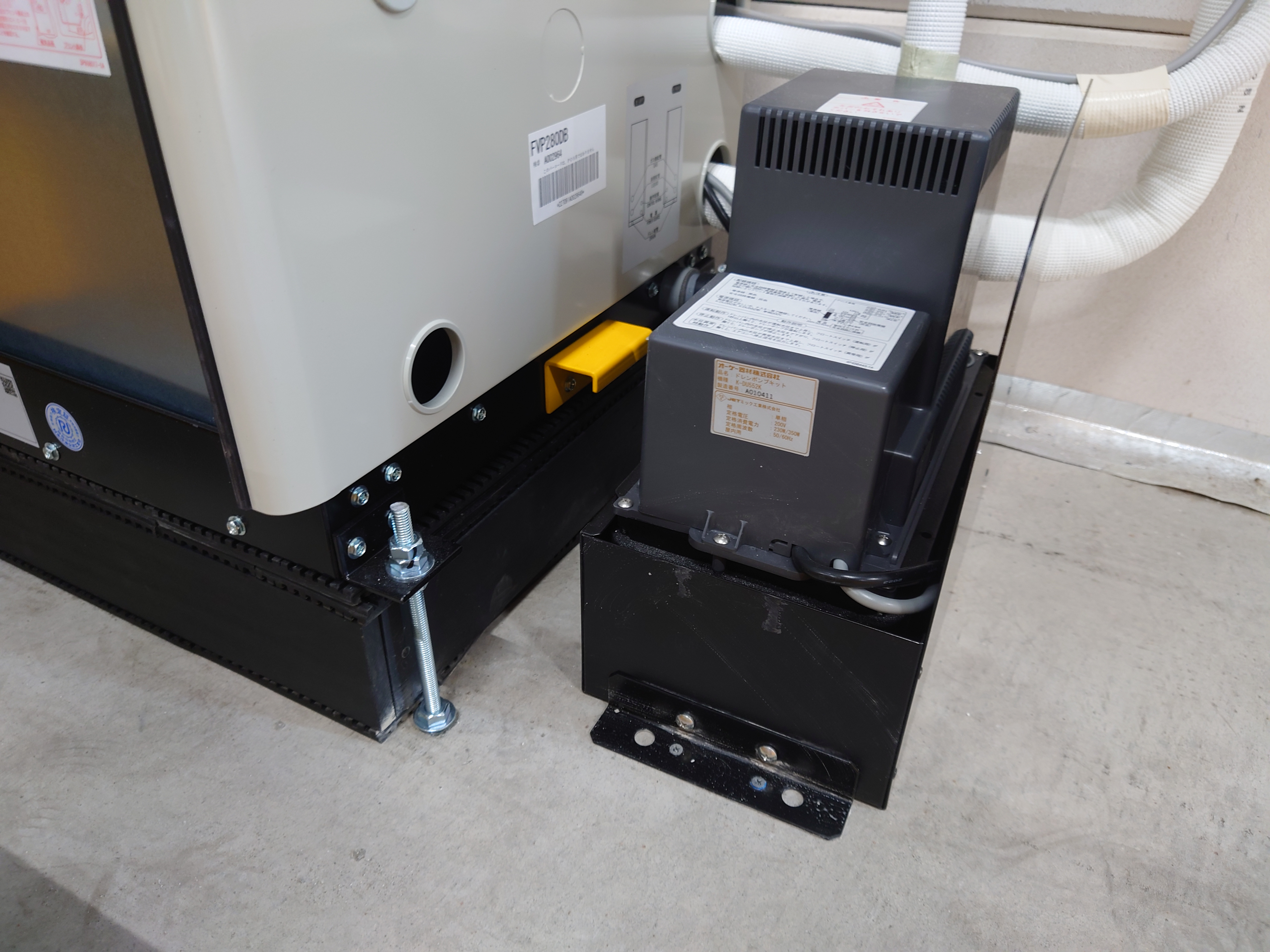本日は京都の倉庫で業務用エアコン床置10馬力の新規取付工事 今回の工事で、10馬力の床置型エアコンに別売品のドレンポンプを つけることにより、排水のことを気にせず室内機を 自由なレイアウトで設置することが可能になりました!!