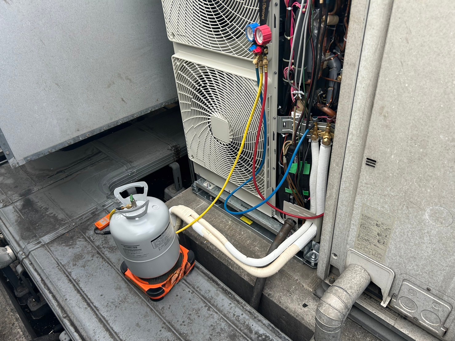滋賀で業務用エアコン更新工事 フロンガスの追加作業中!! 業務用エアコンの更新工事ご依頼いただきました。 チャージ レスの配管長では無理なため、 新設した室外機にフロンガスを追加チャージしている様子です。 エアコンの故障、入替、移設、洗浄、フロン漏えい点検等、 どんな事でもエアコン工事ならエアコンマイスター デヴァシオンに一度ご相談下さい(^-^)/