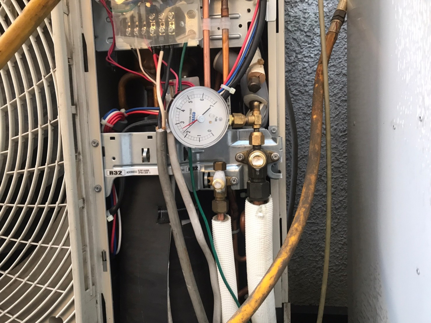 京都でエアコンのガス漏れ修繕工事です! 窒素ガスにて気密試験をし、フロンガスが燃えてるとこを調査している様子です。 フロン漏洩箇所を見つけ次第修繕していきます! エアコンの故障、入替、移設、洗浄、フロン漏えい点検等、 どんな事でもエアコン工事ならエアコンマイスター デヴァシオンに一度ご相談下さい(^-^)/