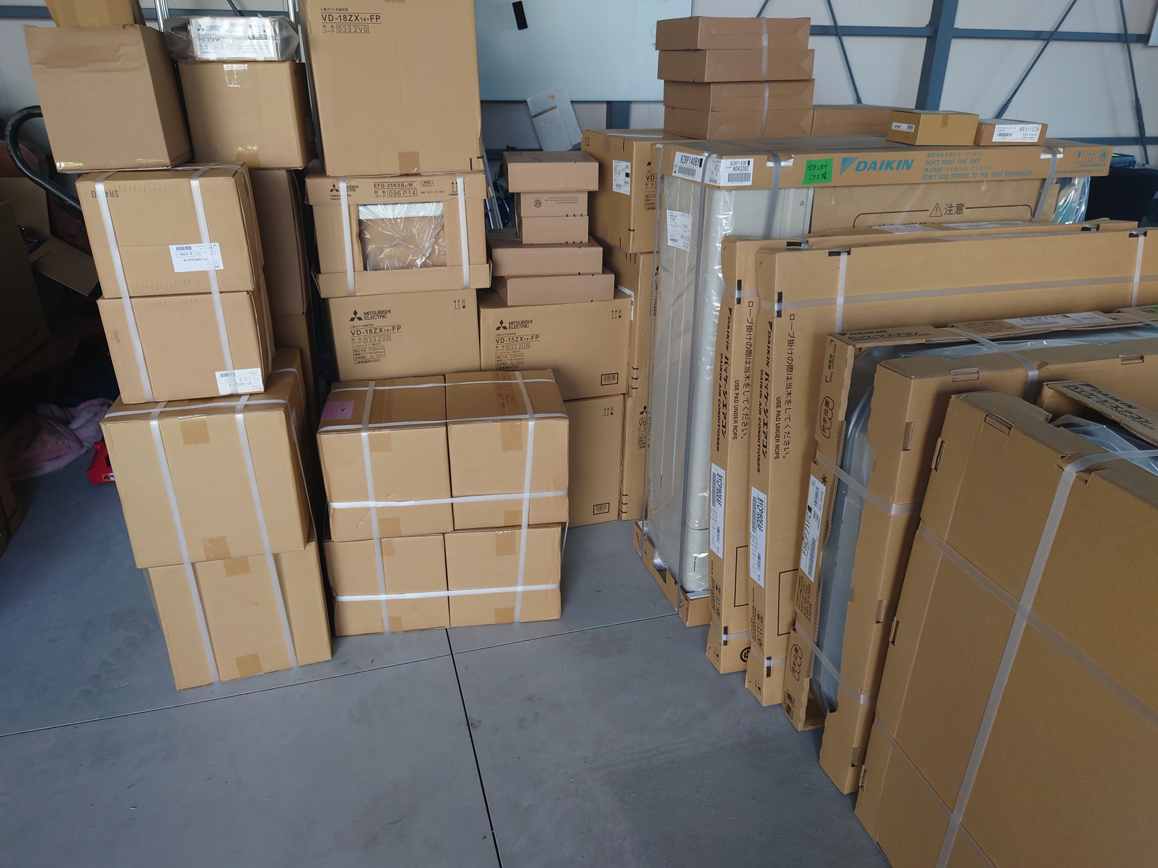 続々と会社の倉庫に業務用エアコンが納品されていきます! 補助金を利用して業務を エアコンの更新工事が増えています。 これを機に 最新の省エネエアコン への更新をお勧めいたします! エアコンの故障、入替、移設、洗浄、フロン漏えい点検等、 どんな事でもエアコン工事ならエアコンマイスター デヴァシオンに一度ご相談下さい(^-^)/