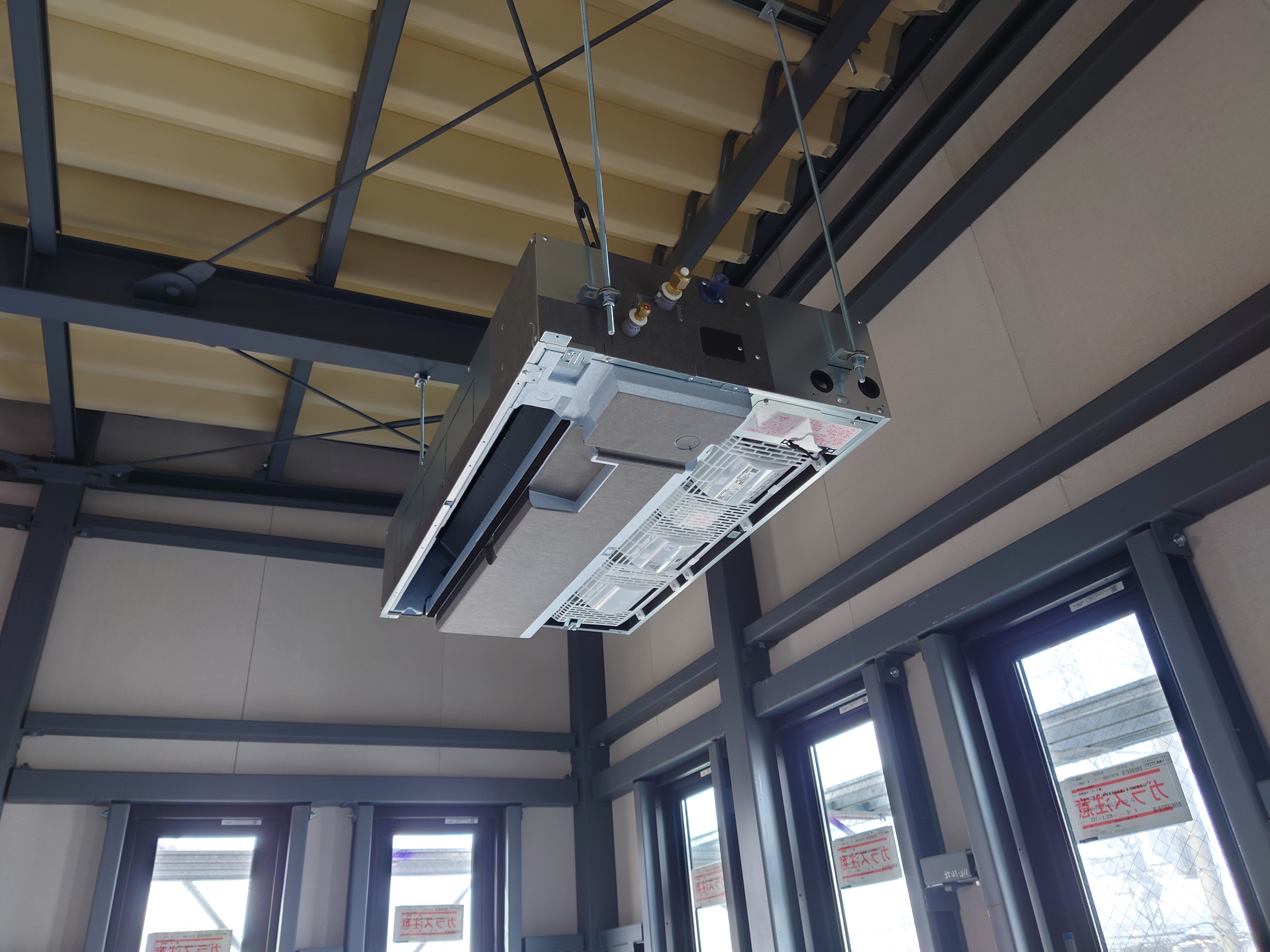 滋賀県新築のテナントで一方向セットエアコン取付工事へ👷☝🏼 一方向カセットエアコンの仕込み工事の風景です👀🌱 エアコンの化粧パネルが取り付けられる前はこんな感じになってます❣ エアコンの故障、入替、移設、洗浄、フロン漏えい点検等、 どんな事でもエアコン工事ならエアコンマイスター デヴァシオンに一度ご相談下さい(^-^)/