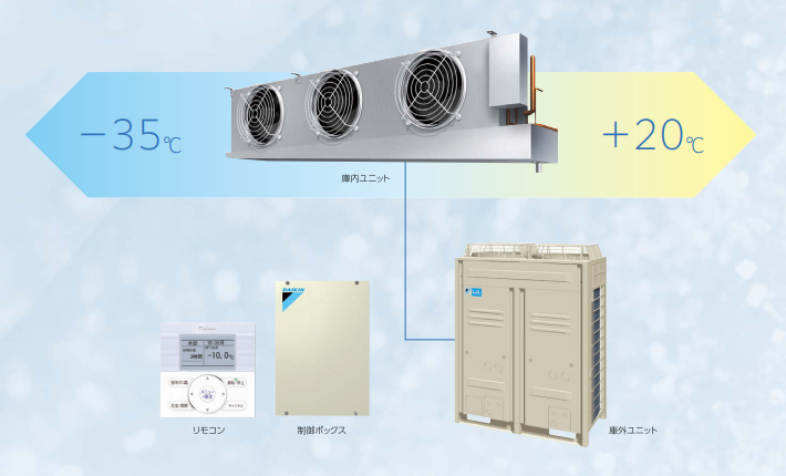 冷凍-35℃ ⇆ 冷蔵+5℃や中温+20℃の温度領域を1台でカバー