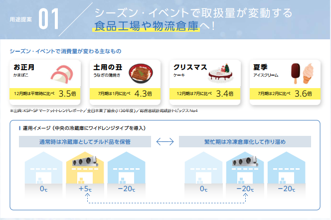 季節ごと、商品ごとに設定できるので、食品工場や物流倉庫に最適!!